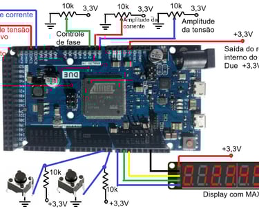 Aulas práticas e teóricas em engenharia, com foco em projetos reais e aplicáveis ao mercado de trabalho, promovendo a formação de profissionais capacitados e atualizados nas diversas disciplinas da engenharia. A figura a esquerda é um emulador de sensores de tensão e corrente para o desenvolvimento de sistemas dinâmicos de correção de fator de potência de sistemas elétricos de corrente alternada.