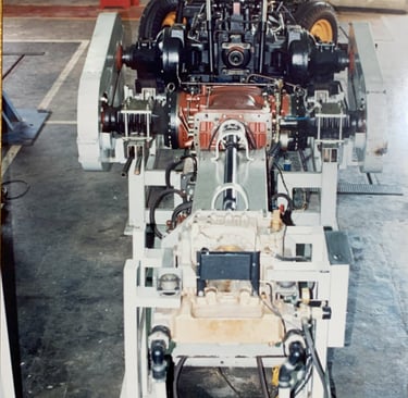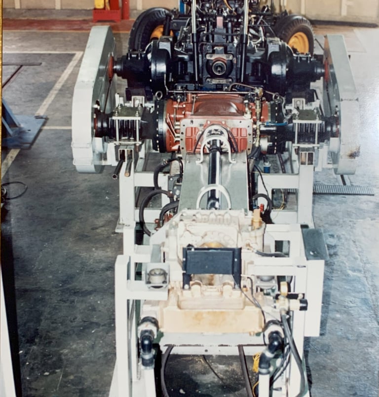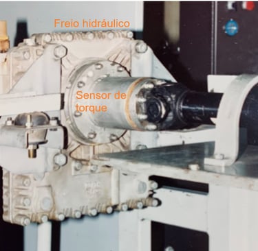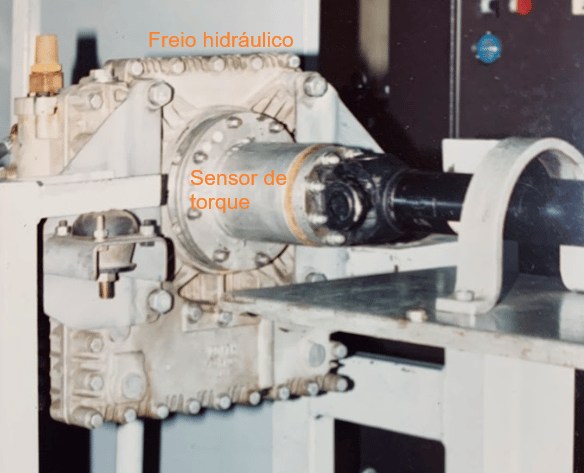 Projeto desenvolvido em parceria Valmet (atual AGCO) e UMC para a medição de torque de motores de trator utilizando um freio hidráulico em 1992. A foto superior mostra o equipamento de visualização e salvamento dos testes de torque, inferior mostra o setup de teste com o freio hidráulico e o sensor de torque e a foto a direita mostra o berço de teste completo com um trator aberto na cabeceira.